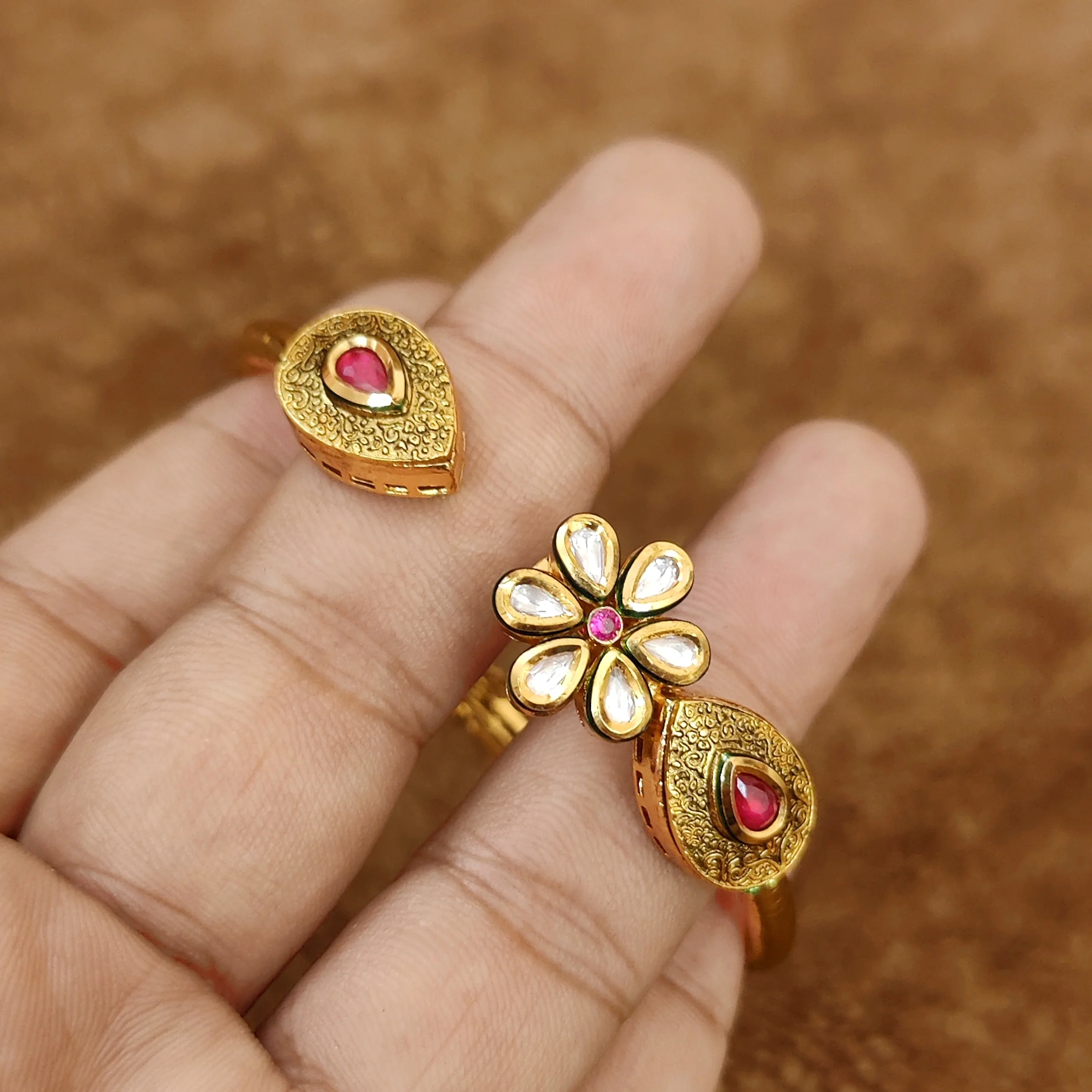 ANTIQUE LOOK RUBY PEAR SHAPED KUNDAN POLKI KADA