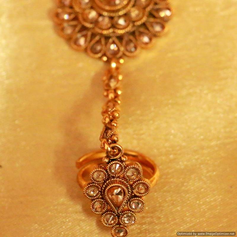 GOLD PLATED CZ STUDDED ANTIQUE HATHPHOOL