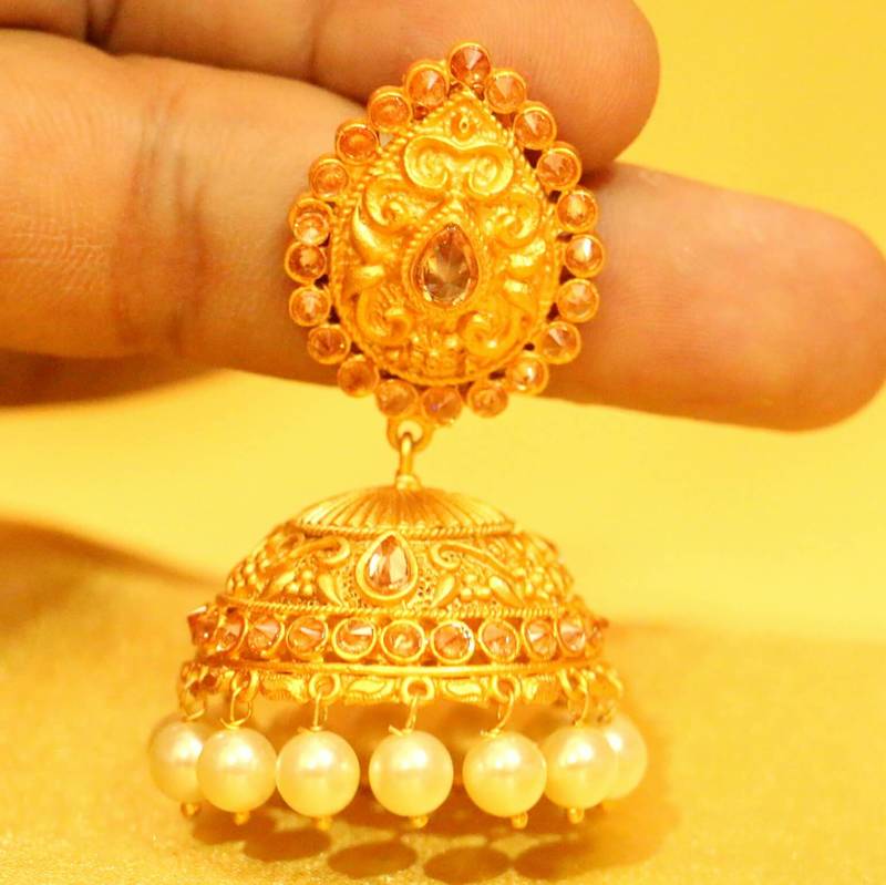 Matt Finish Gold Plated Polki Jhumka's