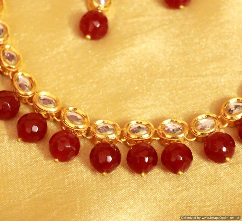 Red onyx single line kundan necklace set