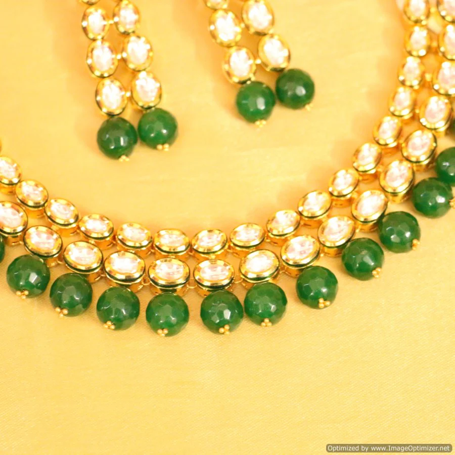 This beautiful necklace set is handcrafted in silver alloy of very fine quality with imitation kundan of very fine quality along with intricate meenakari work done behind the necklace as well as earrings. Â This necklace set is coated with 18 kt gold polish which give them a unique look . An absolutely stunning piece to own and are very light in weight.