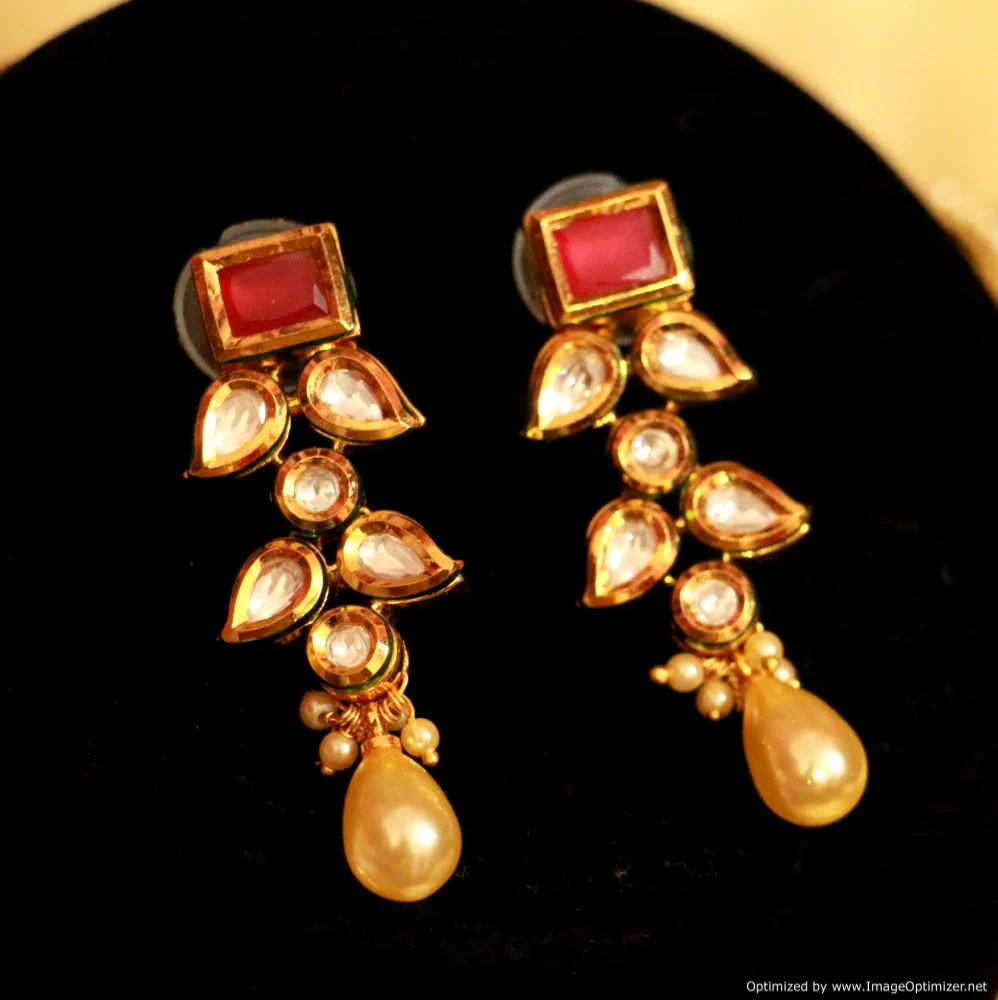 This beautiful necklace set is handcrafted in silver alloy with imitation ruby,semi precious american diamond & kundan with meenakri work of very fine quality . This necklace set is coated with 18 kt gold polish which give them a unique look . An absolutely stunning piece to own and are very light in weight.